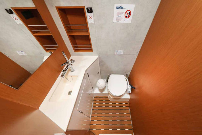 people in 3 double cabins and a saloon with 2 extra beds. Sailing vessel offers 2 toilets with a shower.