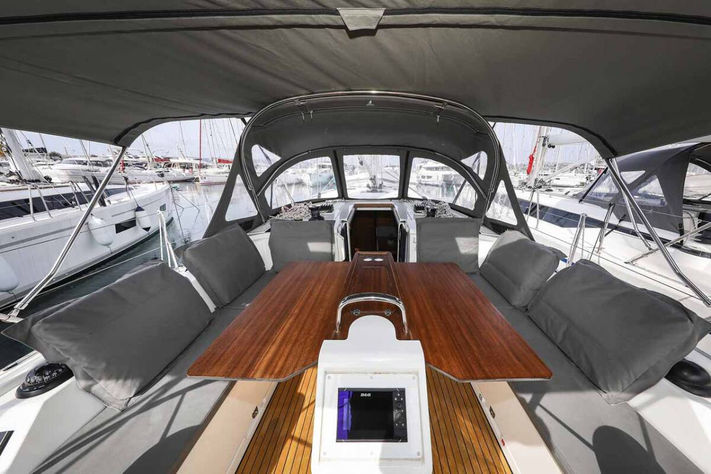 Boat equipment features a classic mainsail, solar panels, a bimini and a bow thruster. It also boasts heating, an