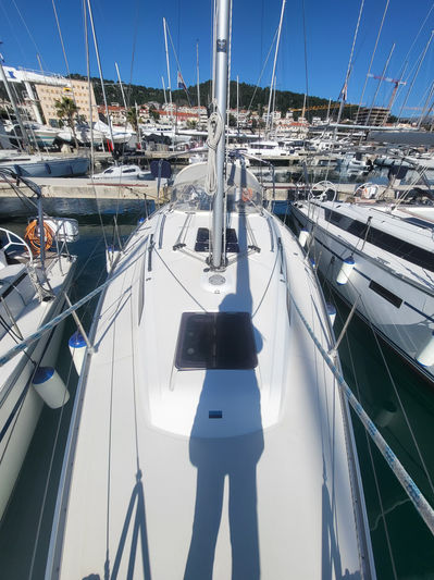 Vessel can accommodate up to 7 people in 3 double cabins and a saloon with 1 extra bed. Sailing yacht offers 1 toilet