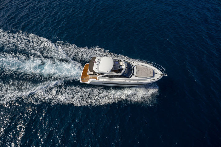 Boat equipment features a salon GPS plotter, a bimini and a bow thruster. It also boasts a flat screen TV, air