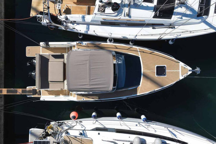 - The Nuva M9 Cabin is equipped with a bimini top, sprayhood, teak cockpit, and GPS chart plotter – cockpit. A stylish accent is provided by a teak deck.